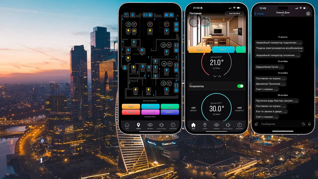 Система Умный дом — объединяем всё в единую систему — современное освещение, климатическое, охранное, мультимедийное и другое оборудование. В любой момент времени из любой точки мира вам будет известно о состоянии устройств в вашем доме (температура, влажность, освещение, розетки, окна, двери, протечки и многое другое).